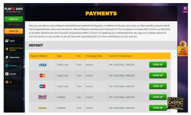 Playamo makes sure for you to not worry about payment procedure. So you must enjoy playing and worry about nothing. They have a huge collection of funding options for you, you won’t face any problem when it comes to banking at PlayAmo. All payment methods at PlayAmo Casino are quick, reliable and absolutely free of cost.